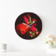 Red Green Floral Modern Abstract Art Pattern #02 Large Clock