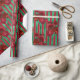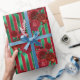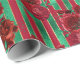 Red Green Floral Roses Metallic Holiday Christmas Wrapping Paper