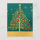 Red Green Gold Glitter Chrismas Winter Bird Tree Postcard