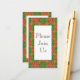 An elegant custom business card sized event ticket or party invitation with vintage block and script custom letters on a red and green holiday squares and a golden fleur-des-lis pattern.