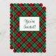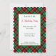 A festive retro red and green holiday Christmas plaid pattern on a custom invitation template with script and block letters in red and green, or change fonts, sizing, even save your design for later.