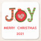 Red Green Joy Christmas Holiday Square Paper Coaster