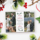 Photo collage thank you wedding card to say thank you and wish your wedding guests merry Christmas. Add four of your own wonderful wedding photos and a personal thank you message and wishes for the holidays and new year. Add your names as well above a hand-drawn illustration of a mistletoe twig. Christmas themed wedding thank you card with mistletoe twigs and Merry and Married in red fonts.