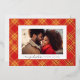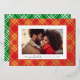 Red Green Modern Calligraphy Christmas Gold Plaid Gingham Photo Frame Foil Holiday Card