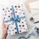 Red Green Navy Grey and White Stars Wrapping Paper