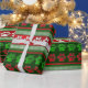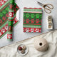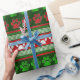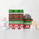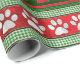 Red green paw print pattern wrapping paper
