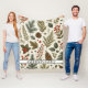 Cosy holiday blanket featuring a red and green watercolor pattern with pine, berries, pinecones, floral elements, and botanical accents. Blending boho and bohemian charm, this soft throw is perfect for winter and autumn decor, gift giving, or seasonal lounging.