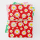 Red, Green & Pink Mixed Summer Daisies Wrapping Paper Sheet