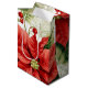 Red Green Poinsettia Holly Berry Christmas Holiday Medium Gift Bag