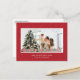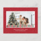 Personalised red photo Christmas postcards featuring snow on a red background and a marquee sign font title decorated with Christmas lights. Easily personalise this red Christmas postcard with your image, text, year and a family name. You can also change the background and font to any colour.