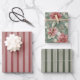 Red Green Stripes Floral Christmas Wrapping Paper Sheet