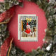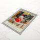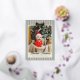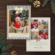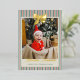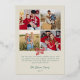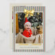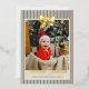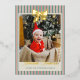 Personalize this gold foil Christmas card with a photo on the front and four more square photos on the back. Wish your loved ones the merriest Christmas with the pre-written text on the back or delete to write by hand. Your photo is printed against a background of Christmas stripes in vintage colors of red, green, and neutral. A gold foil bow at the top, and Merriest Christmas in a vintage script, also in gold foil.