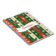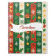 Festive holiday notebook featuring red and green stripes with watercolor pine, berries, floral accents, ornaments, stars, and snowflakes. A charming design perfect for winter and autumn journalling, planning, or seasonal gift giving.