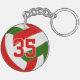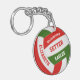 This sporty volleyball themed keychain for girls or boys features a realistic looking red, green and white volleyball upon which you can customise the player's name, jersey number and court position, plus school or club name and mascot name in a varsity letter style font - by katz_d_zynes