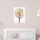 Red green tree and cute birds poster print, featuring a colourful red green tree with a variation of leaves and birds.