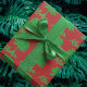Green palm trees and aloha text on a rich Christmas red background. A fun tropical look for your holiday tropical Christmas.