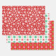 Set of three different, Red, green and white snowflake wrapping paper sheets.