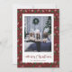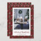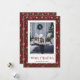 Nostalgic red, green and white ugly sweater photo Christmas cards featuring Santa Claus, reindeer, snowflakes, trees and baubles. Easily personalise these ugly sweater Christmas cards with your photo and family name.