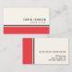 Modern profile or business card featuring a border in red and very dark grey on a slightly off-white / cream coloured background. Customisable name and title / company name on the front and contact information on the back. Dark grey text. Stylish and classy design for men and women. Custom colours are available on request. Great design for an engineer, accountant, web designer, IT professional or anyone who wants a contemporary, elegant business card.