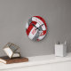 This red, grey and white girl's volleyball wall clock with custom team and school mascot name features the realistic image of a volleyball that has a floral kaleidoscopic pattern blended with its red and grey panels - her name, jersey number and team name are customisable - by katz_d_zynes