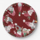 Red Grey Gnomes Christmas Watercolor Leaf Foliage Paper Plate