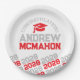 Red & Silver Grey Personalised Graduation Paper Plates - Half Repeating Congratulations