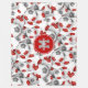 This team colours soccer themed fleece blanket features a pattern of varied size soccer balls turned every which way on a customisable white background - the soccer balls' typically black panels have been recolored red and grey - customise with soccer player's name and monogram or jersey number - by katz_d_zynes