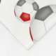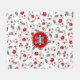 This sporty team colours soccer fleece blanket for boys or girls features a pattern of varied size soccer balls turned every which way - the black panels on the soccer balls have been recolored red and grey - customise with soccer player's name and monogram or jersey number - by katz_d_zynes