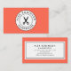 A retro modern business card featuring a circular black and white logo on the front on a blue background. The background colour can be changed to anything that matches your business. This would be perfect for a hairdresser, hair salon or a barber as the logo features a pair of scissors. It would also suit a seamstress, tailor or anyone else that works with scissors.