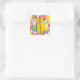 A red haired boy with a yellow surfboard against a background of multicolors tropical leaves on stickers that match our Red Haired Boy Surfer invitations and postage stamps.