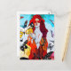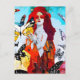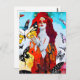 Red Haired Woman and Butterflies Mixed Media Postcard