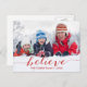 Red Handwriting Believe Holiday Photo Postcard