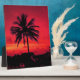 Red Hawaiian Sunset Exotic Palm Trees Plaque