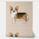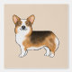 Destei's original cartoon illustration of a red headed tricolor Pembroke Welsh Corgi breed dog. The background colour is beige, but it can be changed to any other colour as well, if so wished.