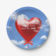 bold red heart floating in blue sky and white fluffy clouds for anniversary party