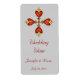 A pretty label to put on your special bottle of wedding wine or to use for any special occasion. It features a light grey background. A graphic of gold and red hearts on a cross at the top make this extra special. Your customisable wine information goes on the bottom. Great for anniversaries, weddings, or Valentine's Day!