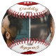Red Heart Happy Father's Day Daddy 2 Photo Collage Softball. Modern personalised softball featuring 2 photos, modern and trendy typography saying Happy Father's Day Daddy, lovely red heart, names and year. Add your names, 2 photos and the year and make a lovely Father's Day, birthday or Christmas gift for a father who loves sports.