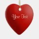 A graphic of red heart on a custom heart shape ornament. The ornament has templates for your text. Note: The 3D effect is the image-the ornament is flat.