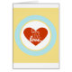 A simple red heart design with a customisable message on the front. Add your own message inside. Available in a variety of size and paper options.