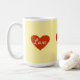 A simple red heart pattern on a lovely mug. Customisable with your text and choice of background colour and style options. Very simple and sweet.