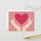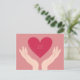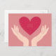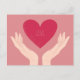 romantic design of a bright pink heart with the word love in the middle and two hands holding up the heart against a blush pink background. This beautiful girlish stylish design is perfect for valentine's day or any other romantic occasion. Tell someone living away from you that you love them with this cute postcard !