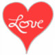 Love is handwritten in white script typography inside large red heart. Original Artwork Design by TamiraZDesigns.