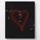 Red heart in centre made from whimsical musical notes. Add text in white font shown in text box, or delete. Click customise to personalise further. Smaller colourful musical notes dancing in red, yellow, blue and silver grey against a black background. Nice for your love, sweetheart, couple. Original Artwork Design by TamiraZDesigns.