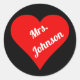 Red heart on black background classic round sticker