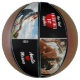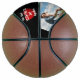Red Heart Our First Valentine's Together 2 Photo Basketball. Personalised basketball featuring 2 photos, modern and trendy typography saying Our first Valentine's Day together, lovely red hearts, name and year on a black background. Add your names, 2 photos and year and make a lovely gift for your boyfriend or girlfriend who loves sports.