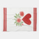 Ideal for cottage-style decor, this kitchen towel showcases a watercolor illustration of a red heart and two pink roses with leaves. The simple yet elegant design is complemented by faux grosgrain ribbon stripes at the top and bottom, adding a touch of textile appeal.
