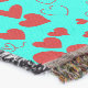Different sizes and forms of hearts in vivid turquoise colour background.