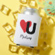 Give your girlfriend or boyfriend this can cooler for Valentine's day or any special occasion and they will love you for it. This modern design features a red heart and the letter "U" in black typography with a name for you to personalise. Designed by world renowned artist ©Tim Coffey.