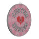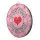 Red Heart, White with Black Outline Text on Pink Dartboard