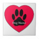 Cute red heart with dog paw print. Custom ceramic tiles. Edit name to customise.